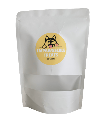 Our favourite peanut butter and honey cookies cut using our custom Impawssible Treats cookie cutters.